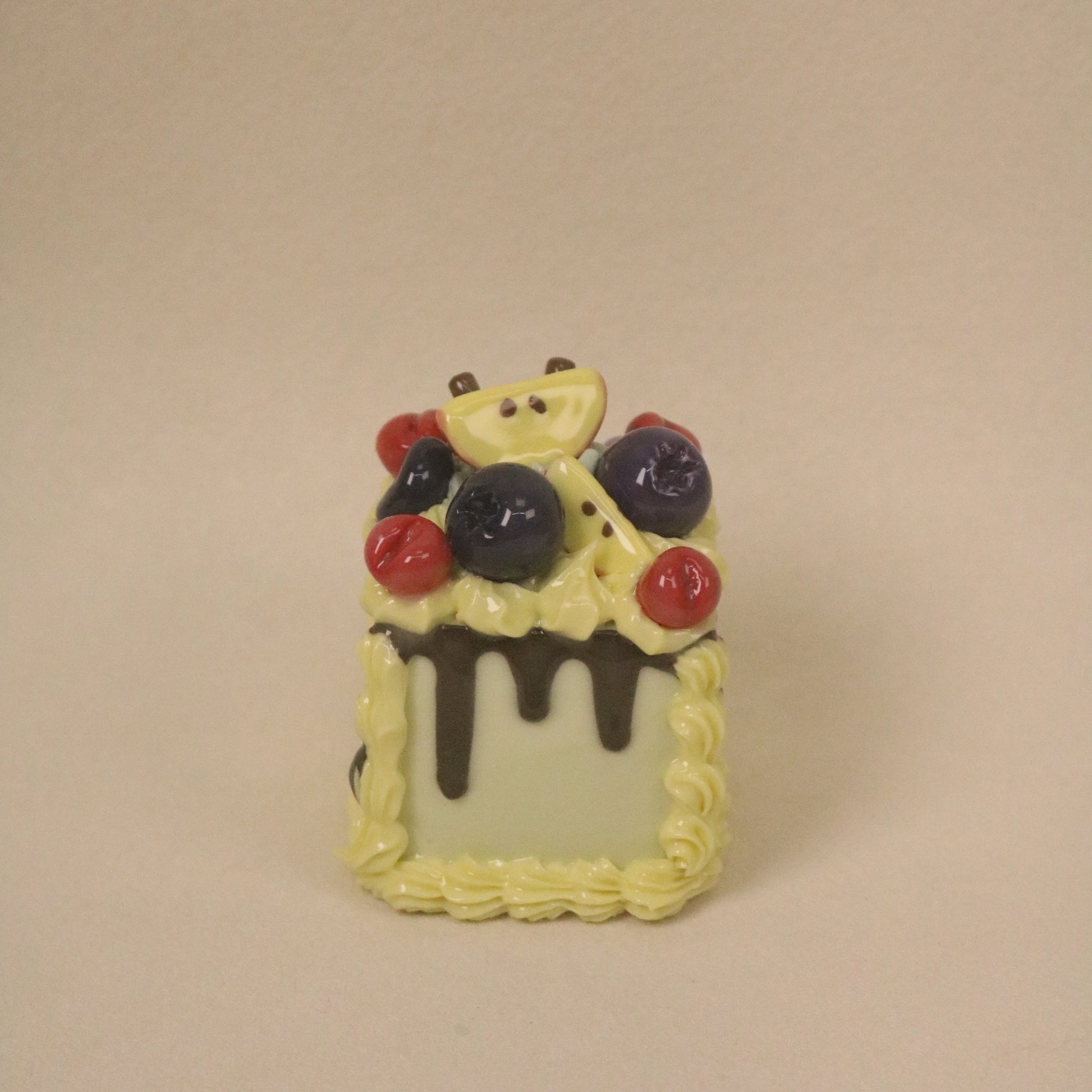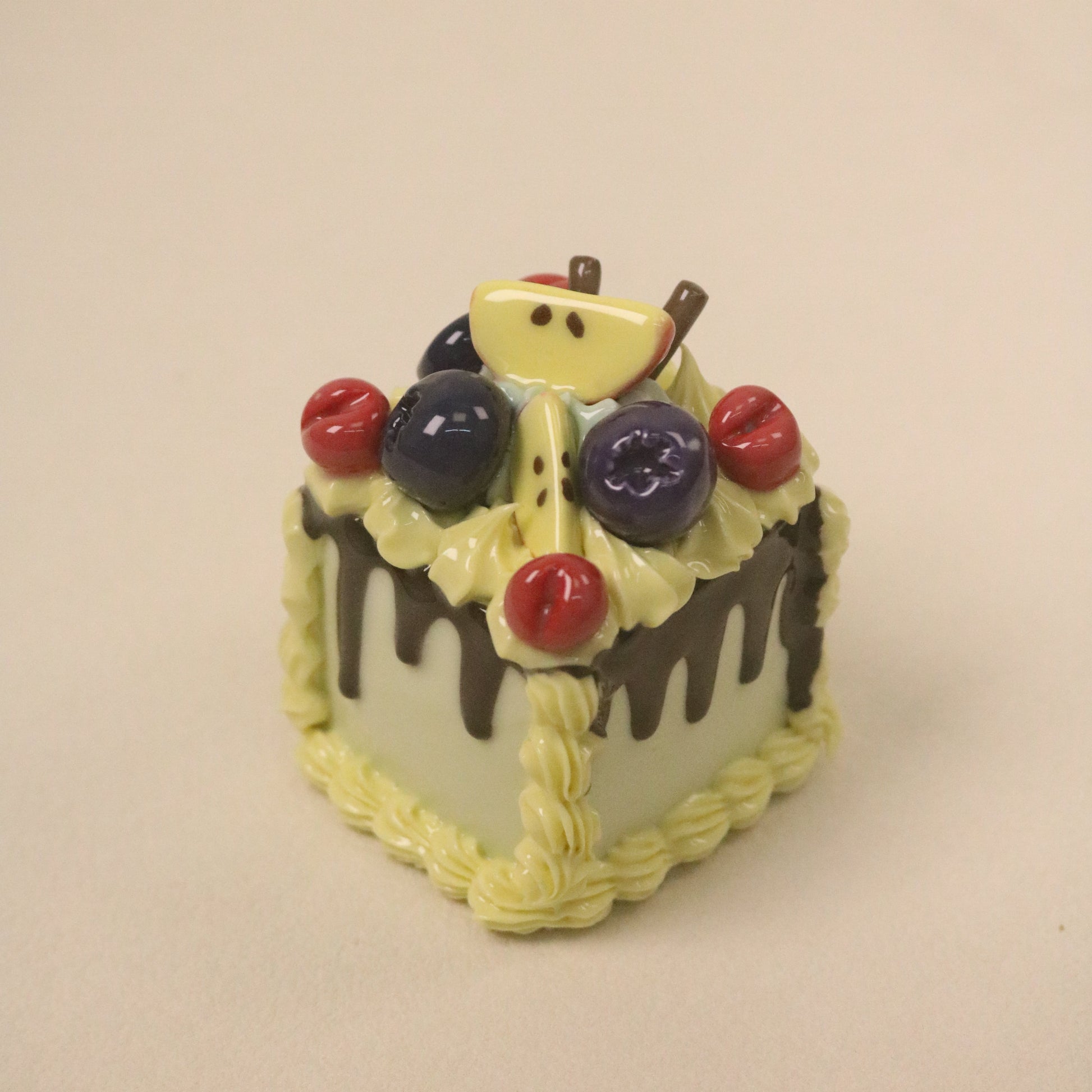 Handmade Ceramic Cake With Vanilla Flavor, Chocolate Sauce, Strawberry Blueberry Square Fruit Cream Dessert Decoration