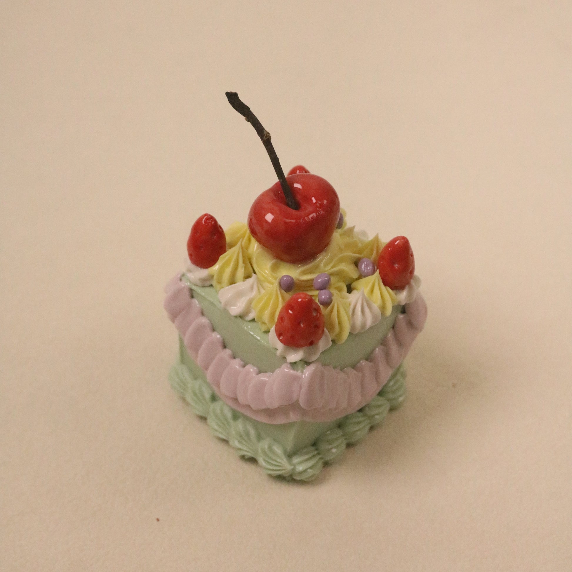 Inspired by childhood afternoons spent gazing at cake shop windows and a family tradition of handmade ceramics passed down through generations, this piece captures a quiet sense of joy.