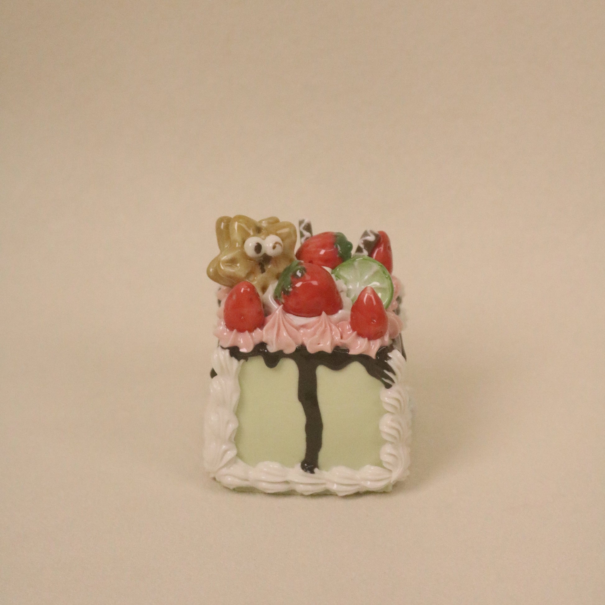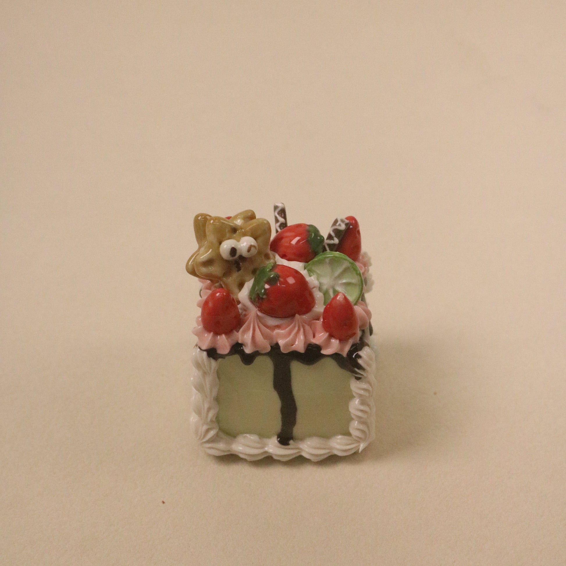 Handmade Ceramic Pistachio-flavored Cookie Decoration Strawberry Square Fruit Cream Dessert Decoration