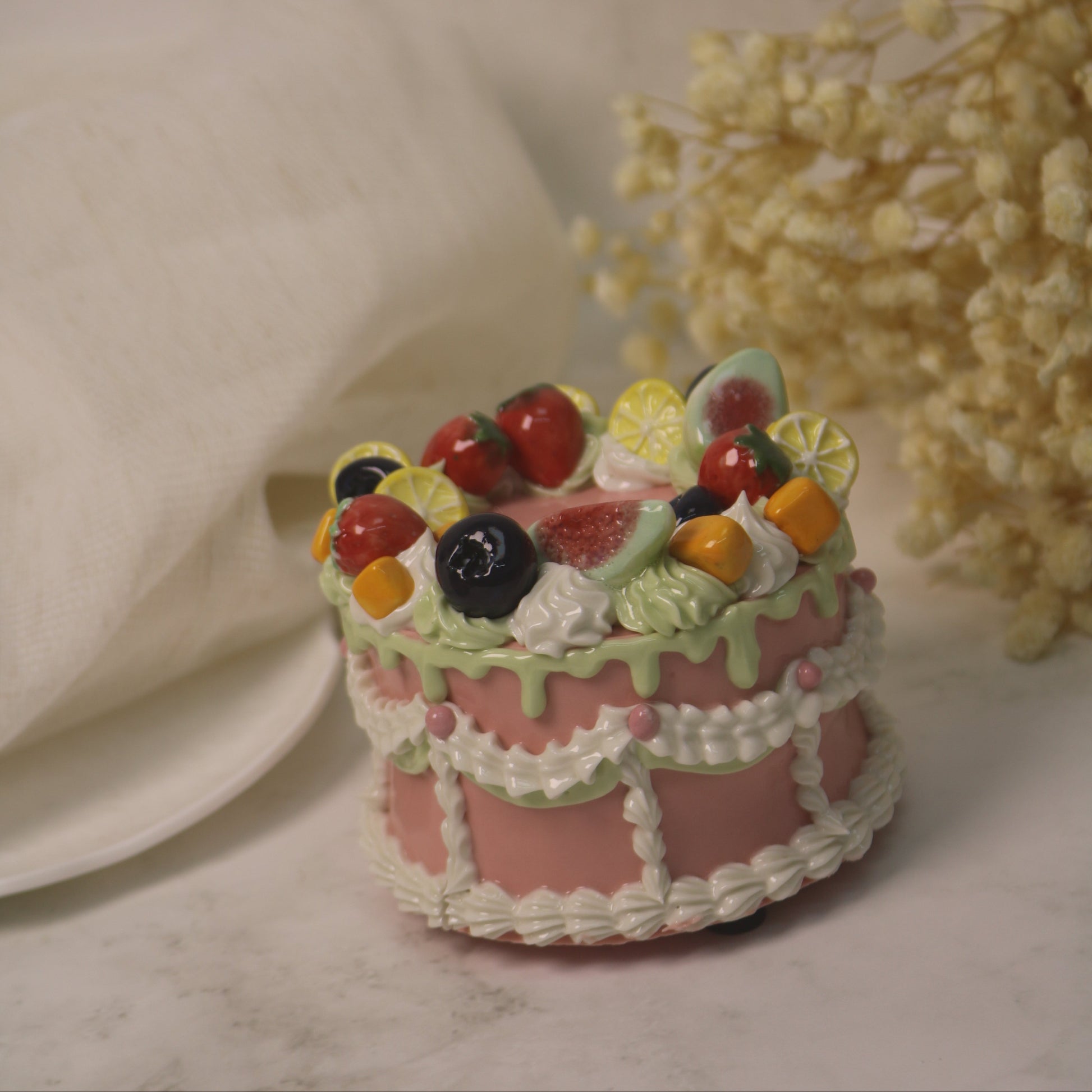 Inspired by childhood afternoons spent gazing at cake shop windows and a family tradition of handmade ceramics passed down through generations, this piece captures a quiet sense of joy.