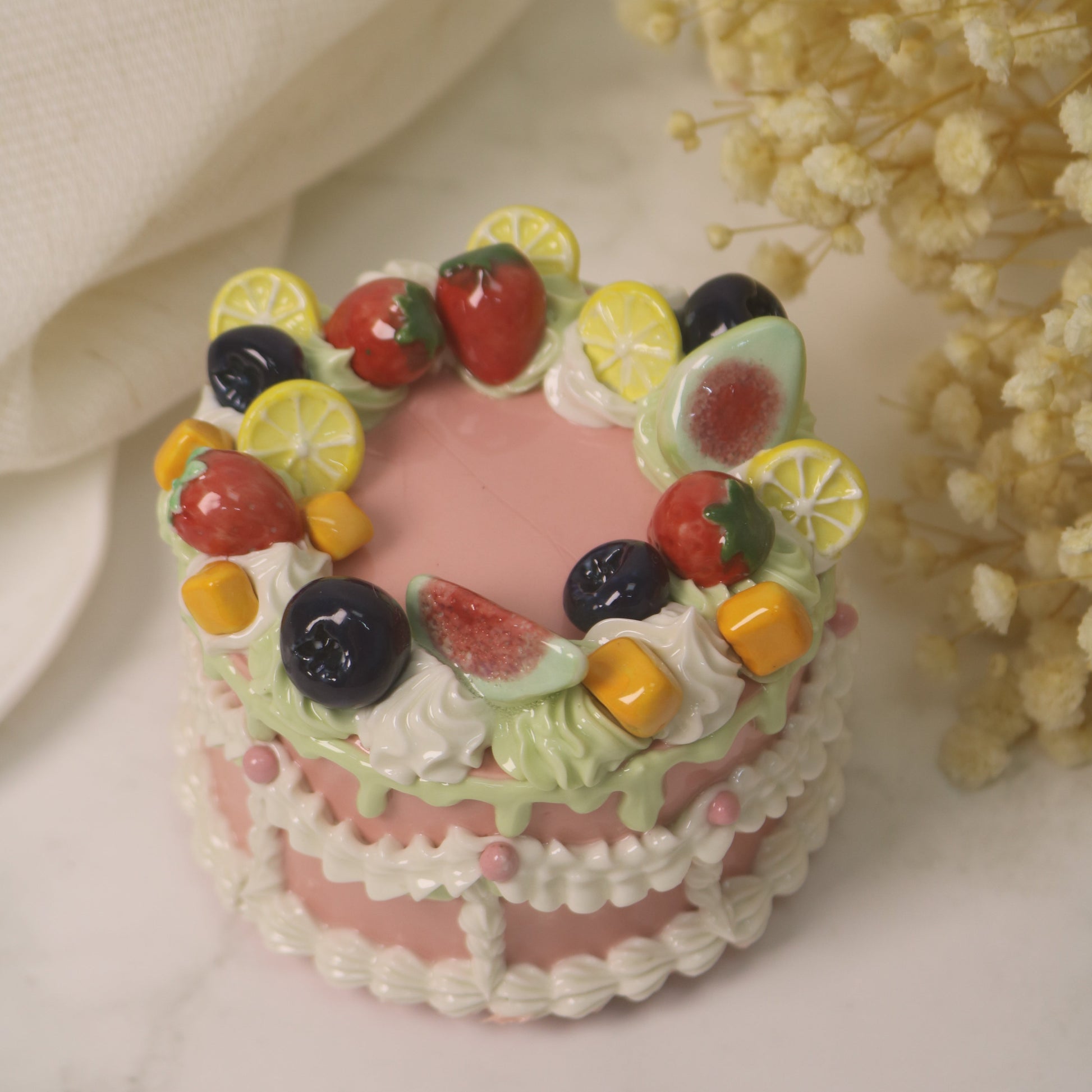 Handmade Ceramic Strawberry Fruit Round Cake Decoration