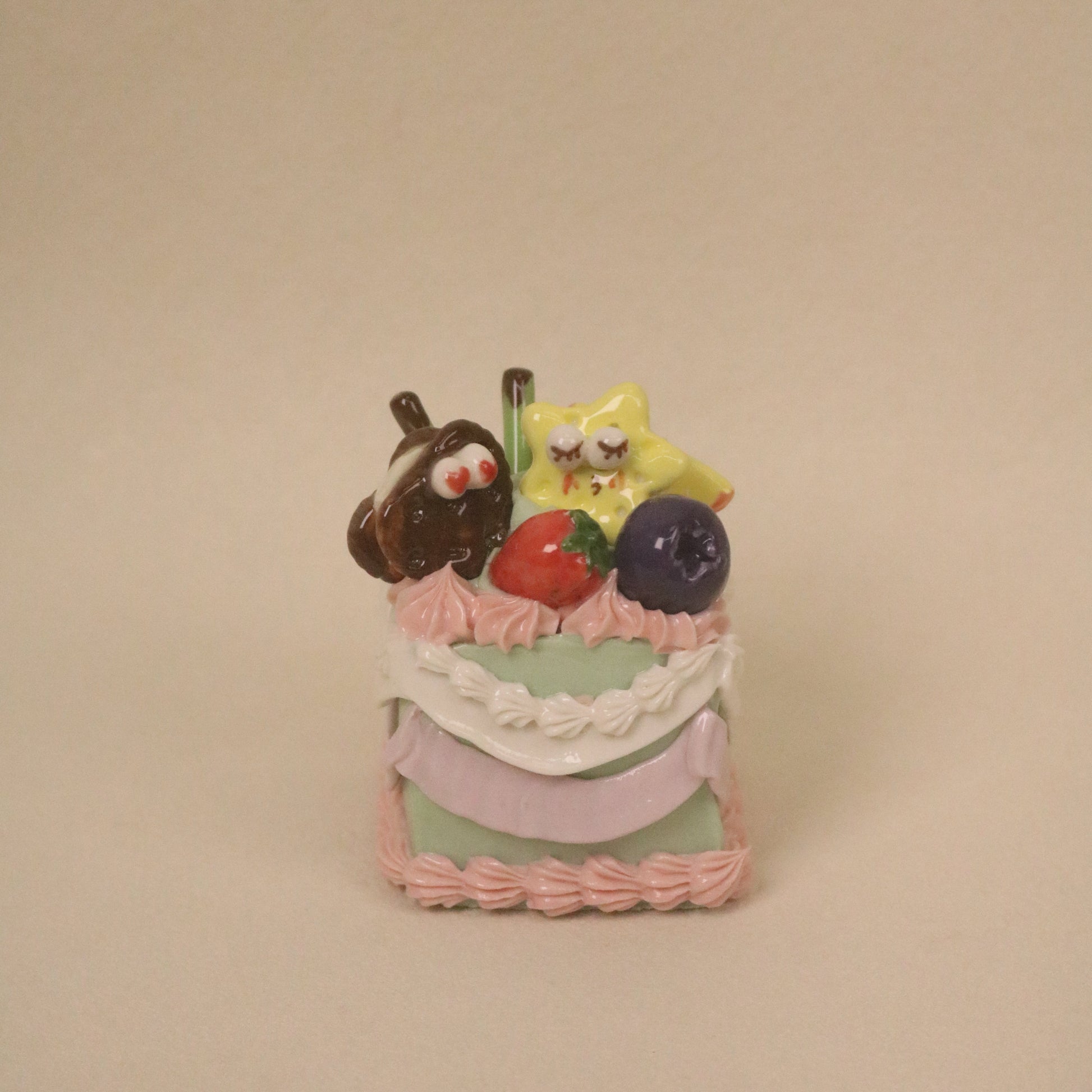 Inspired by childhood afternoons spent gazing at cake shop windows and a family tradition of handmade ceramics passed down through generations, this piece captures a quiet sense of joy.