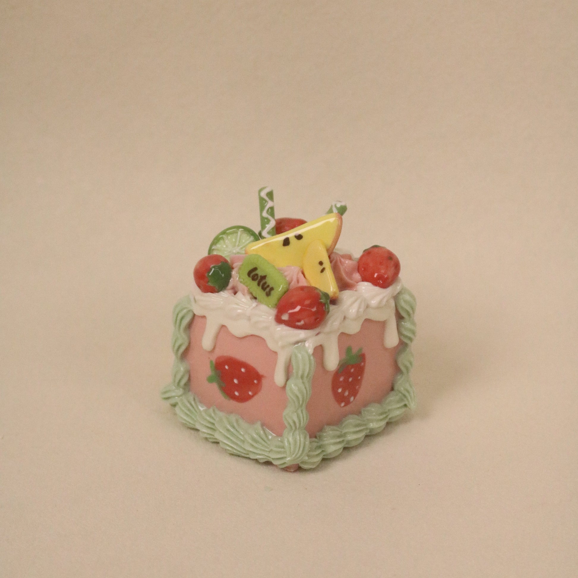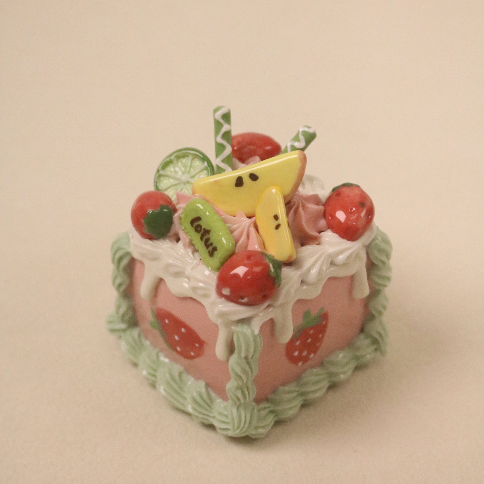Handmade Square Fruit Cream Dessert Decor Ceramic Cake Topper